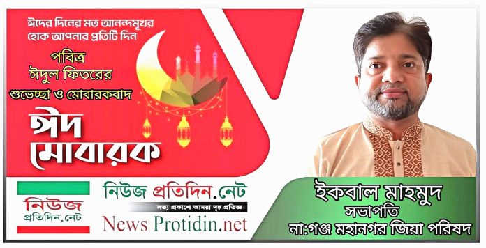 নারায়ণগঞ্জবাসীসহ সমগ্র দেশবাসীকে পবিত্র ঈদুল ফিতরের শুভেচ্ছা জানিয়েছেন ইকবাল মাহমুদ