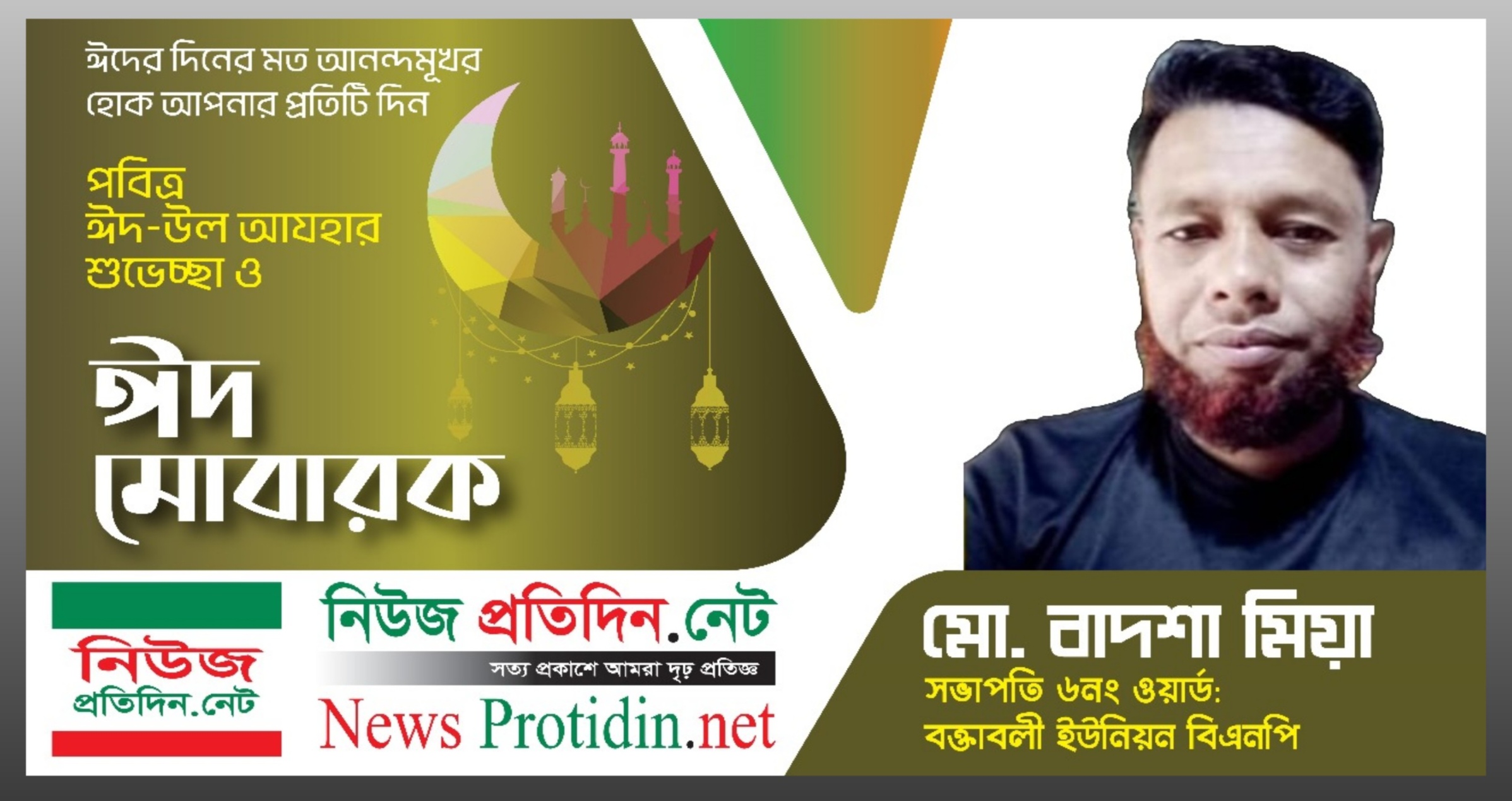 ৬জুন (শক্রবার) এক শুভেচ্ছা বার্তায় বক্তাবলী ইউনিয়ন ৬নং ওয়ার্ড বিএনপির সভাপতি মো. বাদশা মিয়া বলেন, ঈদের খুশি আপনাদের, আমাদের জীবনকে মহান আল্লাহতায়ালা পূর্ণতা দান করুন-এই দোয়া করি।