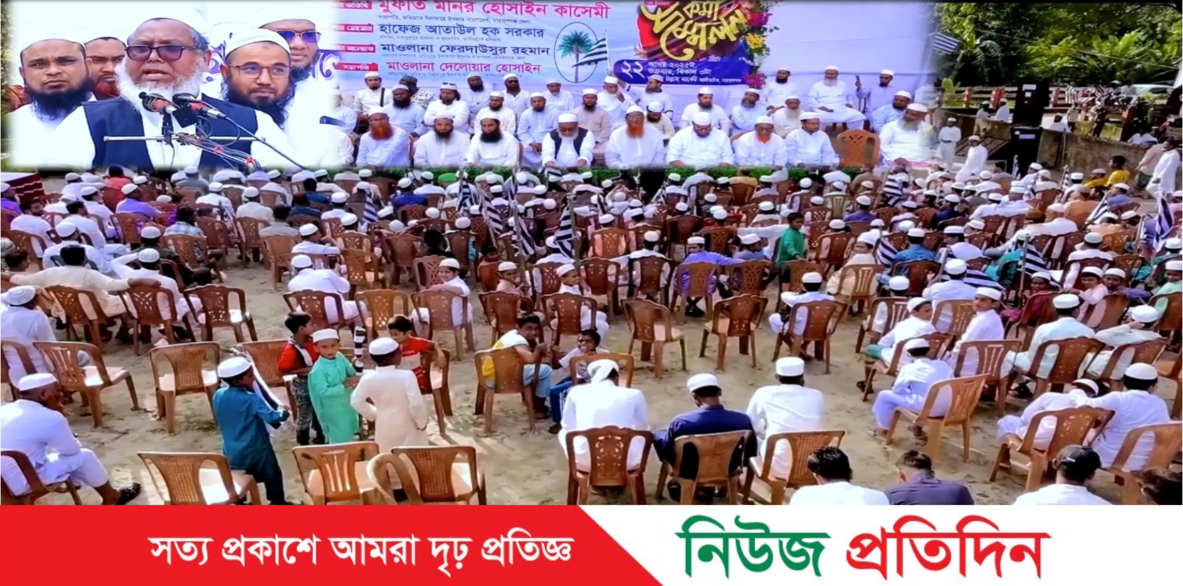 নিউজ প্রতিদিন ডটনেট : বেশ ঘটা করেই নারায়ণগঞ্জ সদর উপজেলার আলীরটেক গিয়েছিলেন খেজুর গাছের প্রার্থী মুফতি মনির হোসাইন কাশেমী। সেখানে এক সভাতে তিনি হাজির হলেও অধিকাংশ চেয়ার ছিল ফাঁকা। সামনের সারিতে এলাকার কয়েকজন থাকলেও বাকিগুলোর আসনে বসা ছিল স্থানীয় একটি মাদ্রাসার শিক্ষার্থীরা। শ্রোতার চেয়ে অতিথির সংখ্যাই ছিল বেশী।