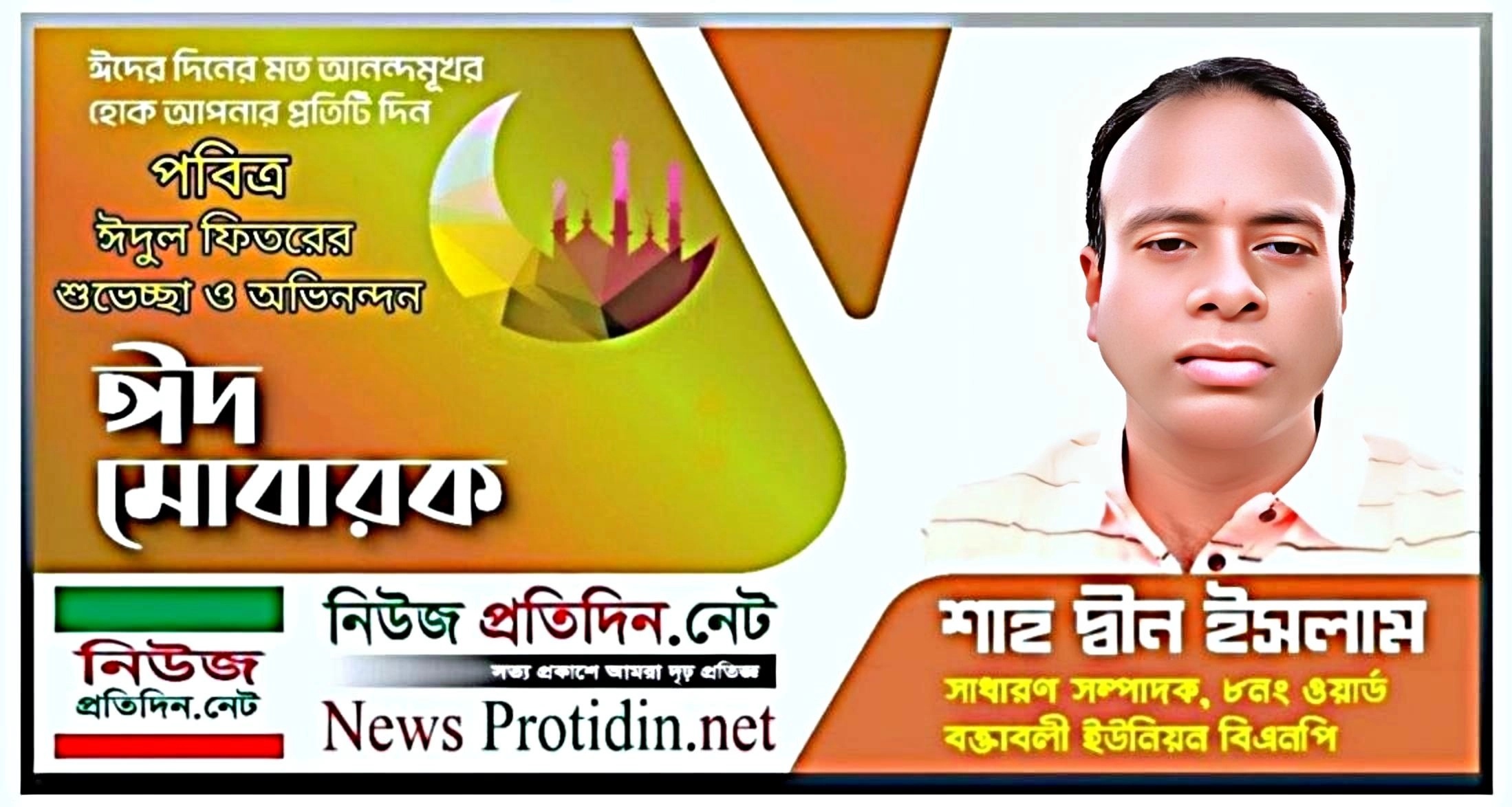 নিউজ প্রতিদিন ডটনেট : পবিত্র ঈদুল ফিতর উপলক্ষে বক্তাবলীবাসীসহ সমগ্র দেশবাসীকে পবিত্র ঈদুল ফিতরের শুভেচ্ছা ও মোবারকবাদ জানিয়েছেন বক্তাবলী ইউনিয়ন ৮নং ওয়ার্ড বিএনপির সাবেক সাধারণ সম্পাদক শাহ মো. দ্বীন ইসলাম।
