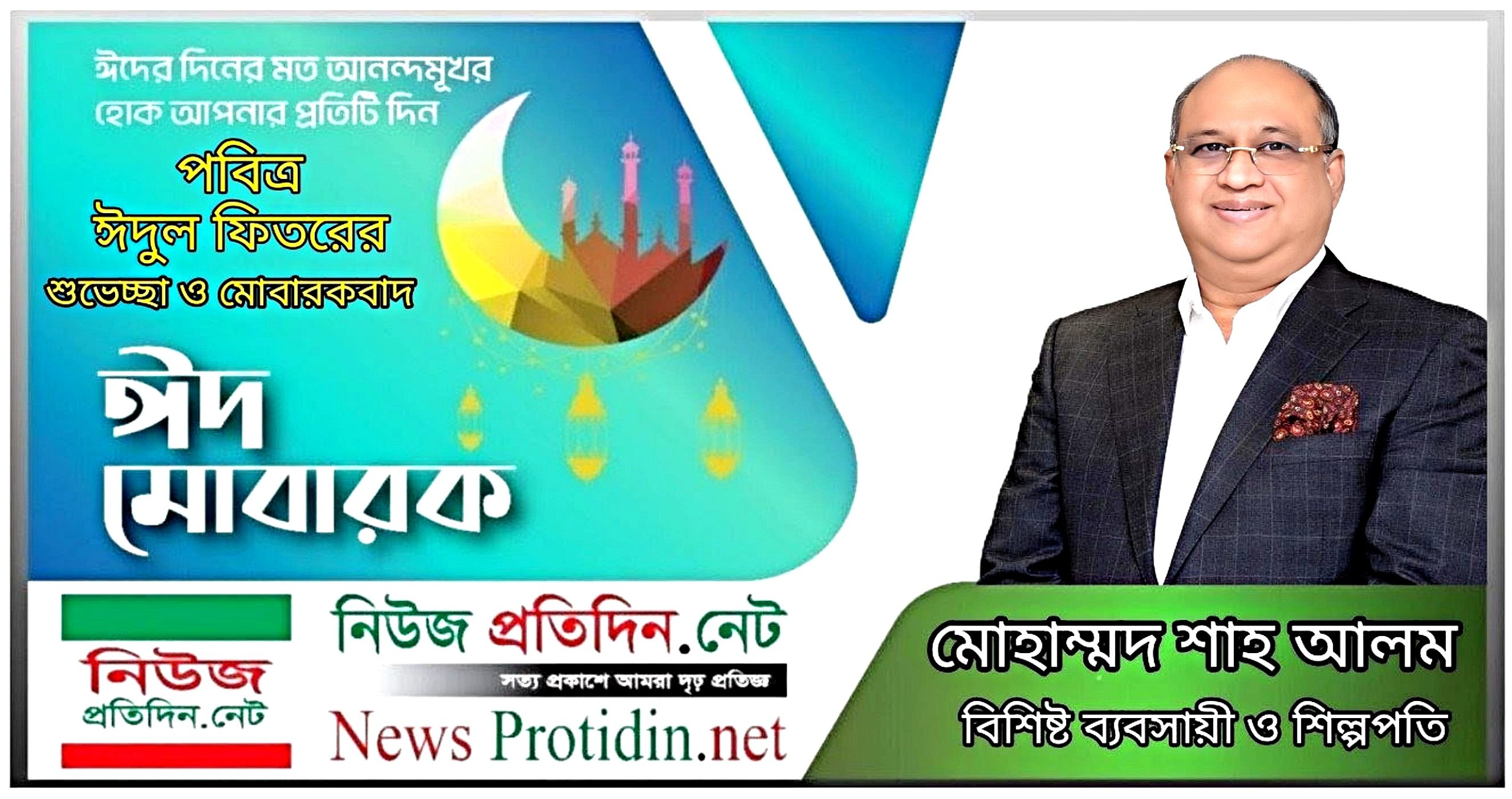 নিউজ প্রতিদিন ডটনেট : পবিত্র ঈদুল আযহা উপলক্ষে দেশবাসীসহ মুসলিম উম্মাহকে ঈদুল ফিতরের শুভেচ্ছা ও মোবারকবাদ জানিয়েছেন বিশিষ্ট ব্যবসায়ী ও শিল্পপতি মোহাম্মদ শাহ আলম।